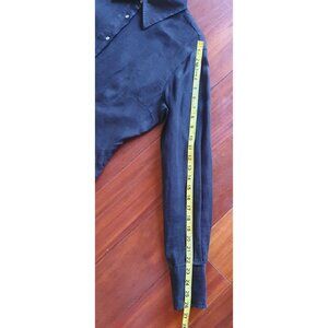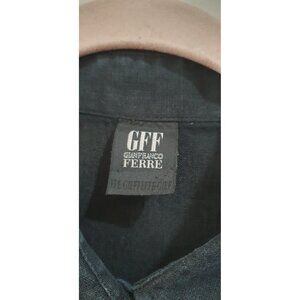 Gianfranco Ferre Vintage Black Shirt, 100% lino Long Sleeves Button Blouse