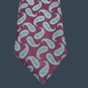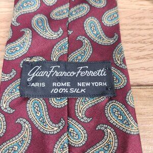 Gianfranco Ferretti 100% Silk Paisley Necktie Burgundy & Blue Classic Mens Tie