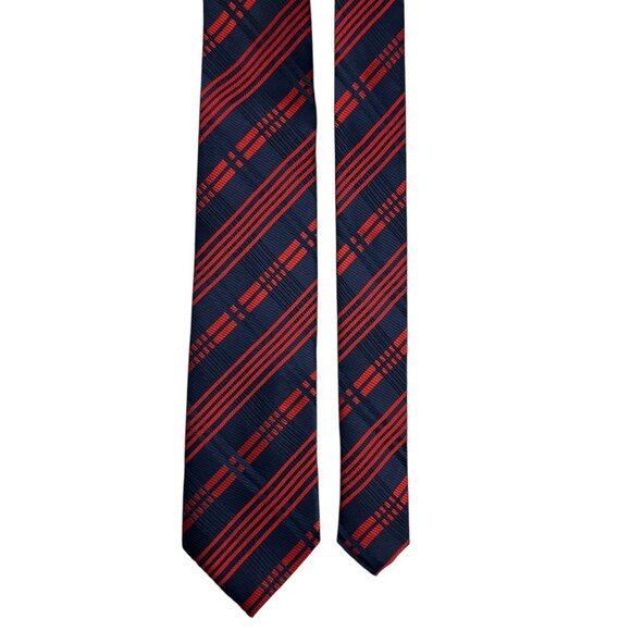 Gianfranco Italy Red & Navy Blue Striped Microfiber Mens Tie Business Work