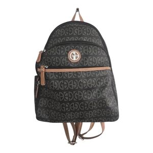 This Giani Bernini backpack is a stylish and functional carryall for women who are always on the go. The brown monogrammed leather exterior is complemented by gold hardware and buckle accents, creating a luxurious and timeless look. The backpack features a drawstring and snap closure, making it easy to access all of your essentials.