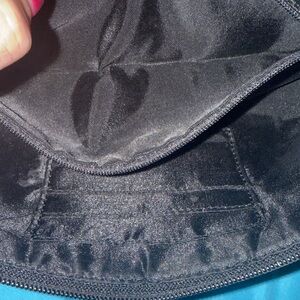 Elegant black leather shoulder bag. Ideal for versatile use. Can be worn as shoulder bag or as a hand held. Has 3 card slots and a zippered pocket