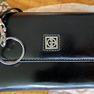 Giani Bernini Black Leather Wallet Pocketbook Zip Pouch w/ Pen + Key Ring NWOT