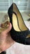 Chic black heels with studded design. Peep-toe style for a modern look. Ideal for elegant occasions.