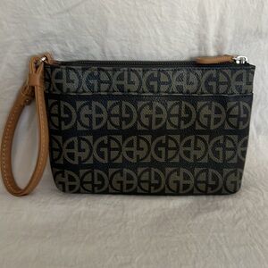 Classic Giani Bernini block signature wristlet with 6” removable drop strap and front zip pocket. 7”x4”x.5”. EUC