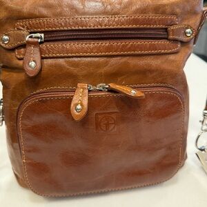 Giani Bernini Brown Leather Crossbody Bag Silver Hdwr Adjustable Strap