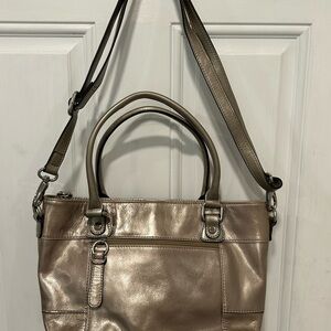Giani Bernini Champaign Gold Distressed Leather Handbag/Shoulder Or Crossbody