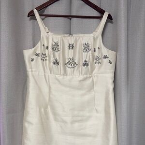 Elegant cream dress with intricate silver embellishments. Perfect for weddings. Sleeveless design. Is xxl size only wear once excellent condition and looks precious