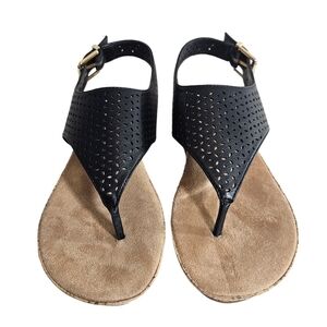 Giani Bernini Fatima Black Perforated Thong Slingback Buckle Sandals Sz 6.5