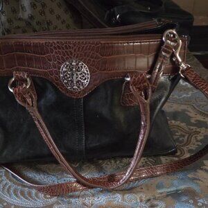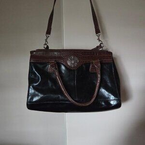 A Genuine Leather, Medium/ Large. Glazed Black/Brown handbag, In very good condition.