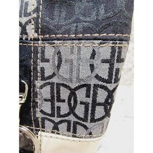 This Giani Bernini handbag is a stylish addition to any outfit. With a checkered pattern in neutral colors, it features a satchel/top handle bag style that is perfect for casual occasions. The bag has a zip and magnetic closure, with double handles and a metallic fiber exterior material.
