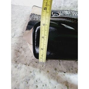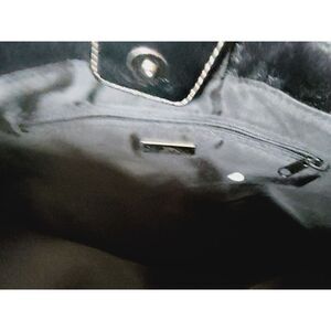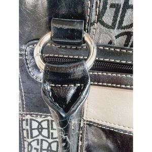 The interior of the bag has inner pockets and dividers, and it comes with a lock accessory. The bag is 14 inches wide and 10 inches high, making it a large size for everyday use. The handle/strap material is please see details in listing, and the hardware color is also please see details in listing. This tote is part of the Giani Bernini product line, and it has a metal theme.