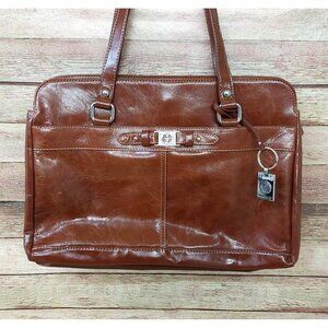 This Giani Bernini Large Purse Tote Laptop Shoulder Bag is a stylish and functional accessory for women. Crafted from glazed vegan leather in a sleek brown color, it offers ample space for your laptop and essentials.