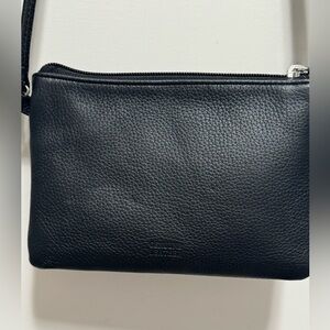 Double zipper crossbody with clean interior.