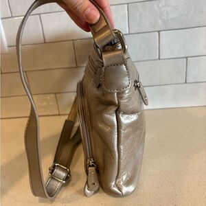 Giani Bernini Metallic Champagne Pebble Leather Crossbody Bag Shoulder Bag Purse