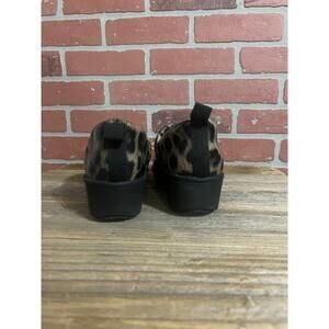 Brown leopard print cavvell platform slip on clogs size 6M. These clogs have memory foam for comfort and support.