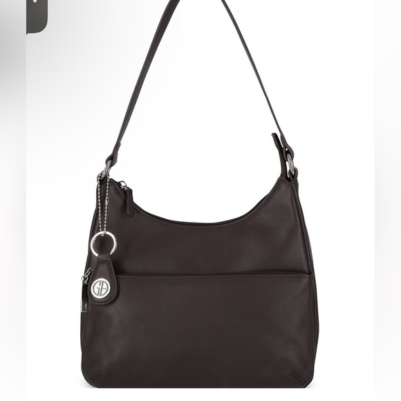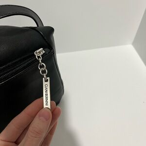 • Back zip pocket; front zip pocket; Giani Bernini key fob; shiny silver-tone hardware