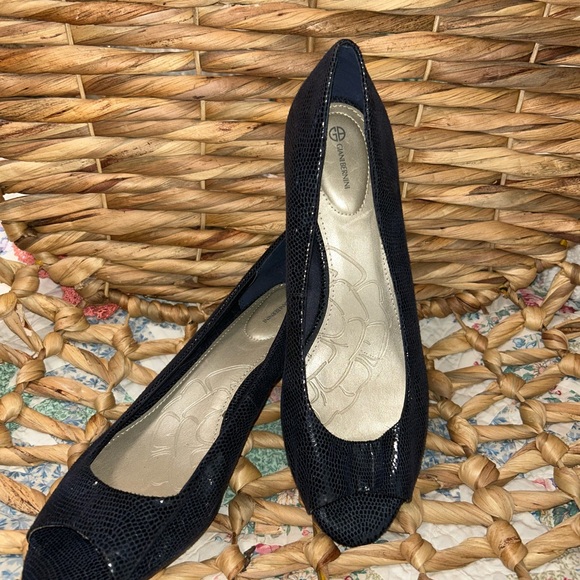 Giani Bernini Navy Blue Textured Peep Toe Flats 9.5 M