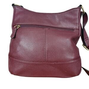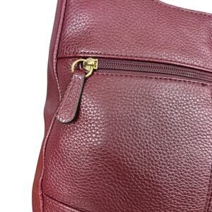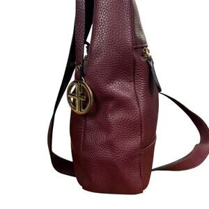 Giani Bernini Pebble Leather Burgundy Crossbody Shoulder Bag Purse Gold Tone