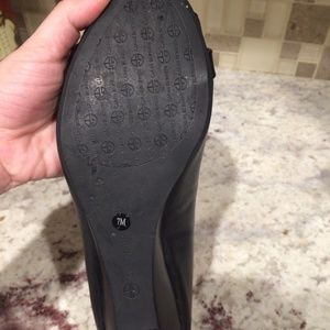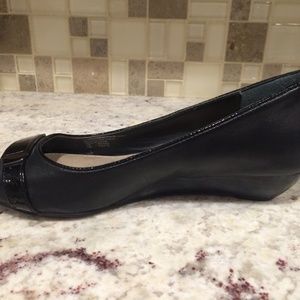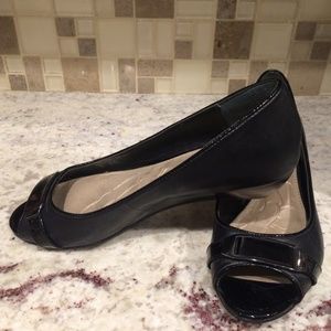 These leather shoes are adorable and never worn! Super comfortable in the store and then I got pregnant and my feet expanded. I was never able to wear them. Add a little peep toe to your work outfit with these shoes.