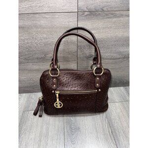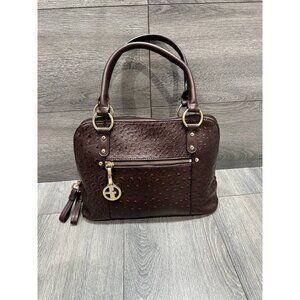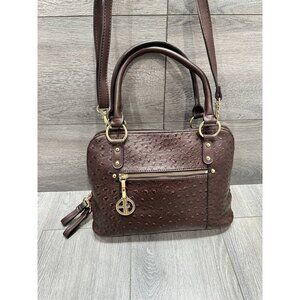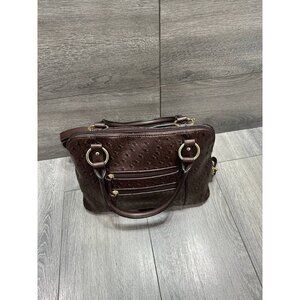Giani Bernini Satchel Handbag Ostrich-Embossed Dome Chocolate/Gold bag