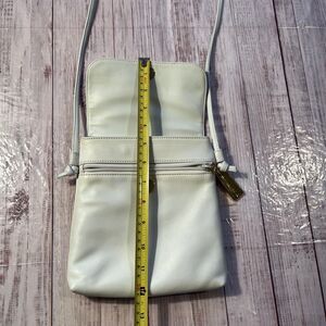 Pre-Owned Like-New White Genuine Leather Cross-Body Purse has an Inner Pocket for Added Security. Adjustable Strap.