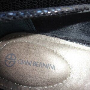 Giani Bernini Soria open toe pumps black snake print size 8.5 m. 2" heels