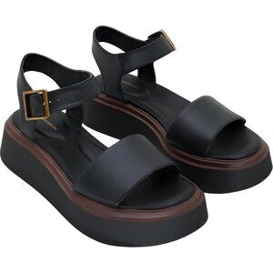 Sleek platform wedges deliver modern lift and comfort. Black finish complements any outfit. See photos.