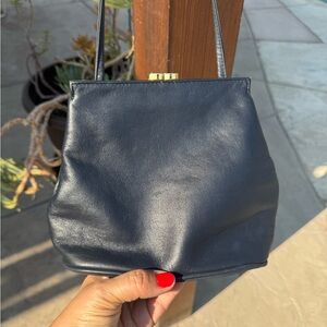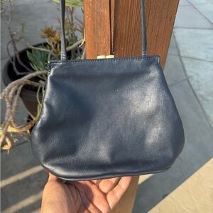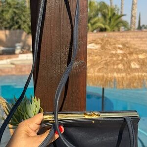 Keywords: Giani Bernini, vegan leather, shoulder bag, vintage, retro, black, gold hardware, kiss lock, small bag, women's fashion, evening bag, casual bag, zipper pocket, pre-owned, excellent condition, Retro, Jazz Revival, classic