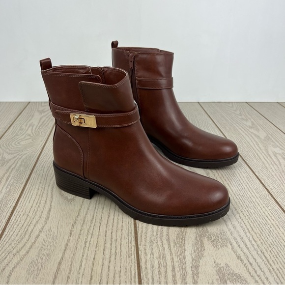 new in box, Giani Bernini Women's Becca Memory Foam Buckled Booties, size: 11M women’s, color: Mocha Brown, MSRP $100.