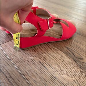 Gianni Bernini coral colored memory foam Belinaa” wedge sandals