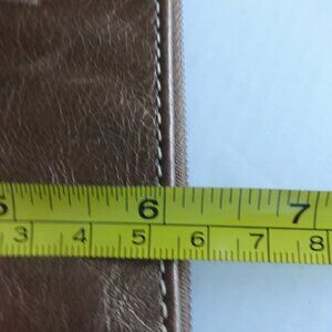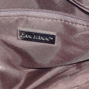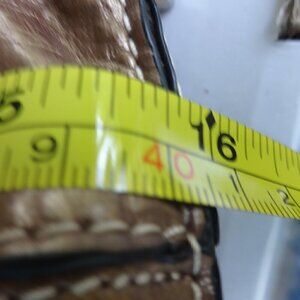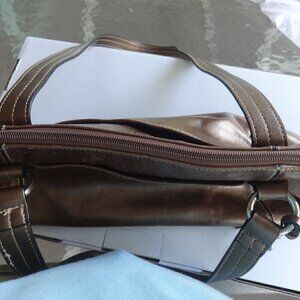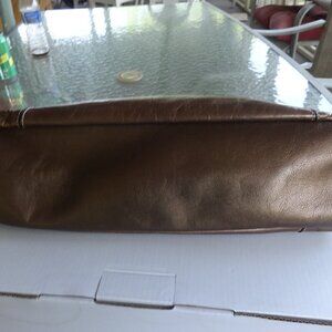 Giani Bernini leather copper color shoulder bag, top zipper closure, front and back outside pockets, inside zip pocket, two inside small open slips 16" x 6" x 4" wide bottom, very soft leather, brown cloth inside very good condition, very clean white stitching, silver tone hardware business, business casual, everyday wear, minimalist , cruise, vacation, classic, chic,