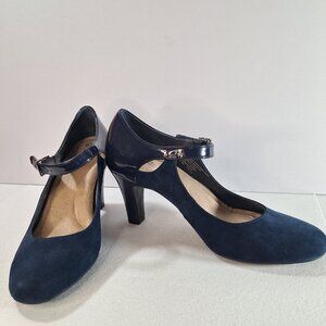 Giani Bernini sz 8.5 Navy Blue Suede & Patent Colorblock Velmah Pumps, 3" Heel