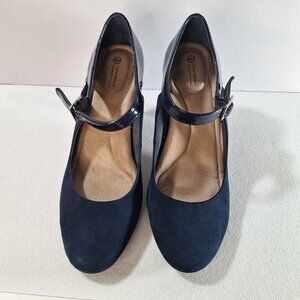 I bought these Giani Bernini pumps for job interviews… and guess what? I got the job. 🙌 I'm a fan of deep blue and the 3" block heel is just high enough to feel confident but not cry. I also love their vintage-inspired Mary Jane-esque-ness. Size 8.5M, worn twice, still in excellent shape. Comfy memory foam, ankle strap that actually stays put.