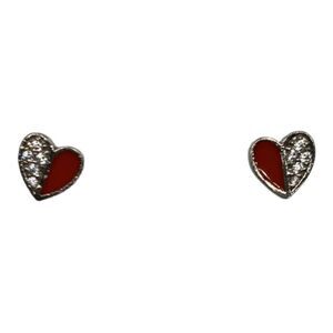Giani Bernini Cubic Zirconia Red Enamel Heart Stud Earrings Sterling Silver New