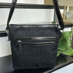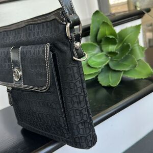 Giani Bernini Black Monogram Crossbody Shoulder Purse – Like New, canvas with Faux Leather Trim