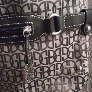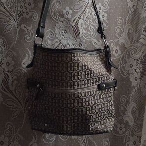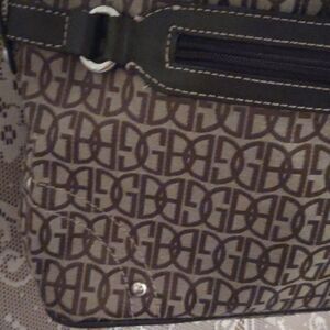 Giani Bernini Brown Signature Shoulder Bag 12 inch drop strap, 2 exterior zip pockets footed bottom, Zip top closure, zip interior pocket, three additional slide in pockets, excellent condition
