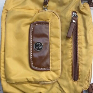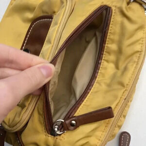Giani Bernini Crossbody Faux Leather Nylon Mustard Yellow Brown Bag