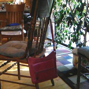 Great fun. Great crossbody with outside pocket: Zipper with signature pull. Magnetic closure, inside a place for I D and phone. Flip side had another zip pouch. Inside: zip and pouch. Super clean. Leather on outside is two textured and is a gorgeous. 9.5 wide, 1.5 deep, 10 high. Adjustable strap had a 20 inch drop as shown. Excellent condition. Be hands free and beautiful.