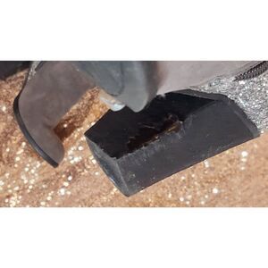 Suede ankle bootie silver glitter trim. 2.75 in block heel. Small knick on heel . See.pics