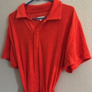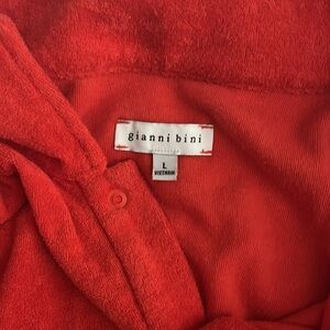 Gianna Bini red Terry cloth romper, tie waist, pockets, women’s size Large. Worn once, excellent condition. Wear as a robe, beach cover up, or a comfy vacation outfit.