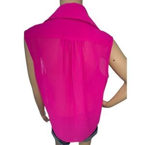 Gianna Bini Hot Pink Button Up Sleeveless Front Tie Blouse