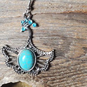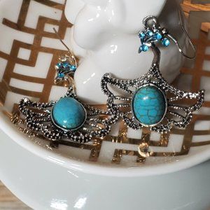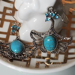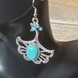 Gianna - Oval stone in Peacock setting. Weigh 1.5 oz each. Total width is 1 6/16". Stone is 7/16" x 10/16". Dangle is 2 1/4"