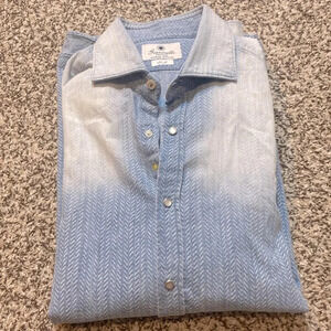 Excellent condition. Super soft. Snap button closure. Size large, could fit Medium too, depending on how you like your fit. Slim Fit. Pit to pit 22”. Shoulder to hem 29”.