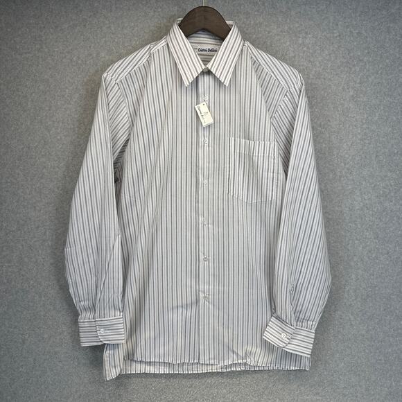 Gianni Bellini Shirt Mens Size 16 White Black Striped Polyester Blend Button Up