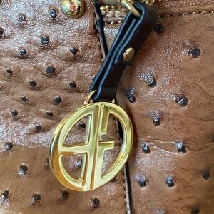 Gianni Bernini Brown Ostrich Textured Shoulder Bag with Black Straps