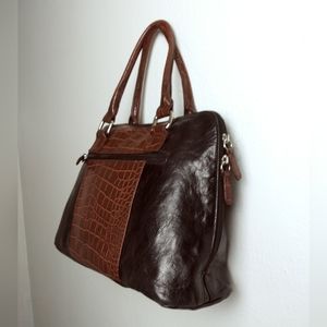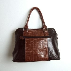 Gianni Bernini Embossed Hand Bag Faux Leather Black/Brown 9"x12"