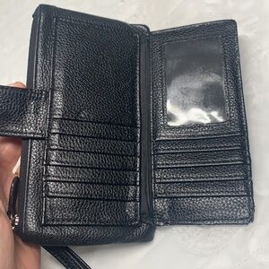 Good preowned condition. Genuine leather, space for everything in a tidy efficient wristlet.