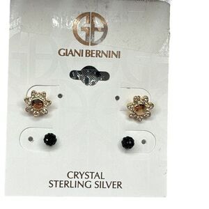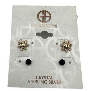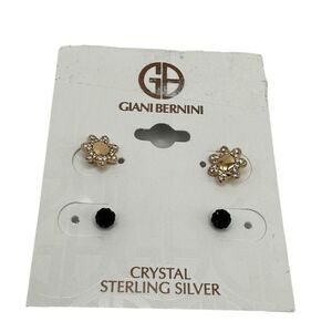 Gianni Bernini Set Earrings in 18k Gold-Plated Sterling Silver Flower Black NWT