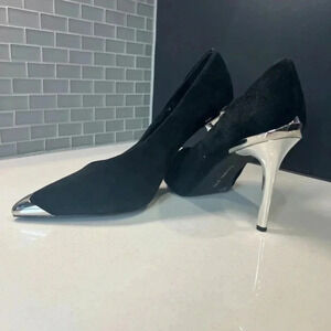 Gianni Bi Black Suede Pumps Silver Metal Accents Size 10