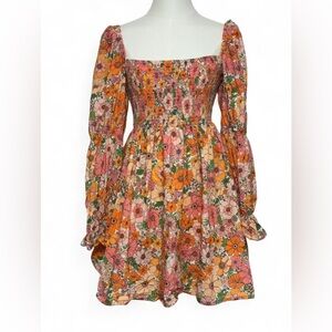Channeling serious 60s/70s vibes — this retro-inspired mini dress by Gianni Bini is a total statement piece. Features a bold floral print, long sleeves, and a flattering silhouette that gives off that effortless mod energy.